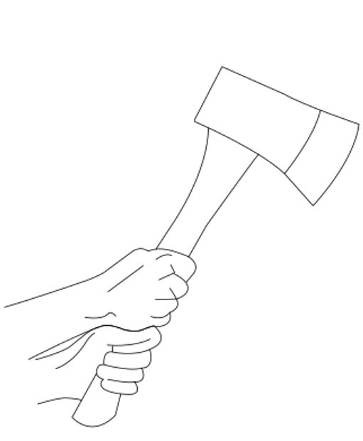 Place both hands on the axe. Firm like you're holding a baseball bat. Make sure the blade is perfectly straight.